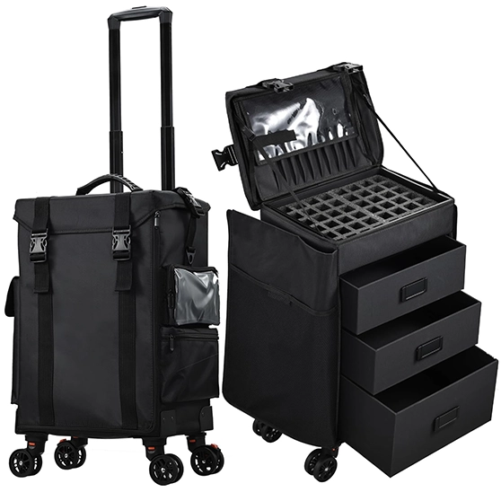 Stagiant Makeup Case Large, Makeup Organizer Bag for Make up Artist, 3 Layer Travel Train Case Makeup Traveling Bag for Cosmetic Hairstylist Nail Tech, 15.7×11.4×4.7