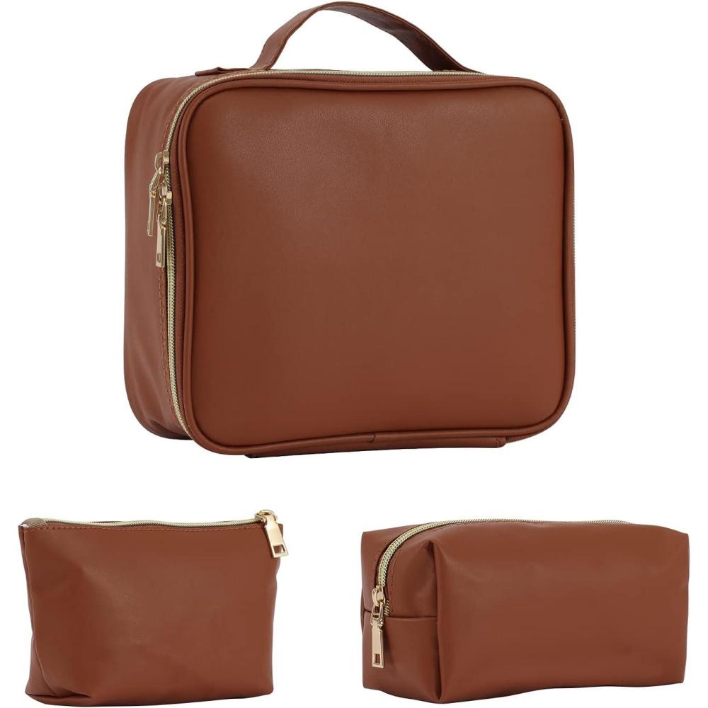 Makeup Bag Set, Stagiant 3Pcs Make up Bag Makeup Bags for Women Cosmetic Travel Bag Makeup Bag Organizer for Cosmetics, Nail Polish, Toiletry, One Soft Makeup Case and 2 Makeup Pouch, Brown