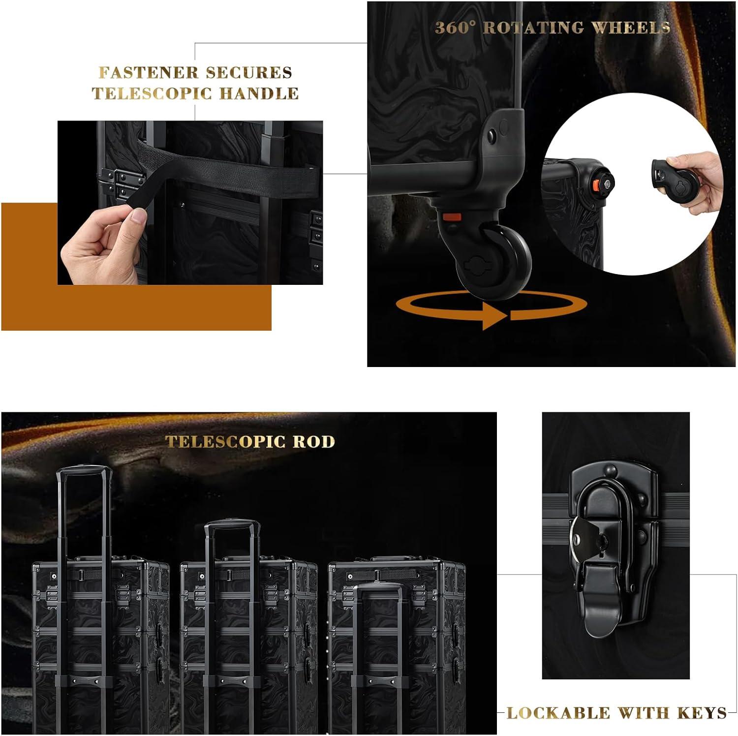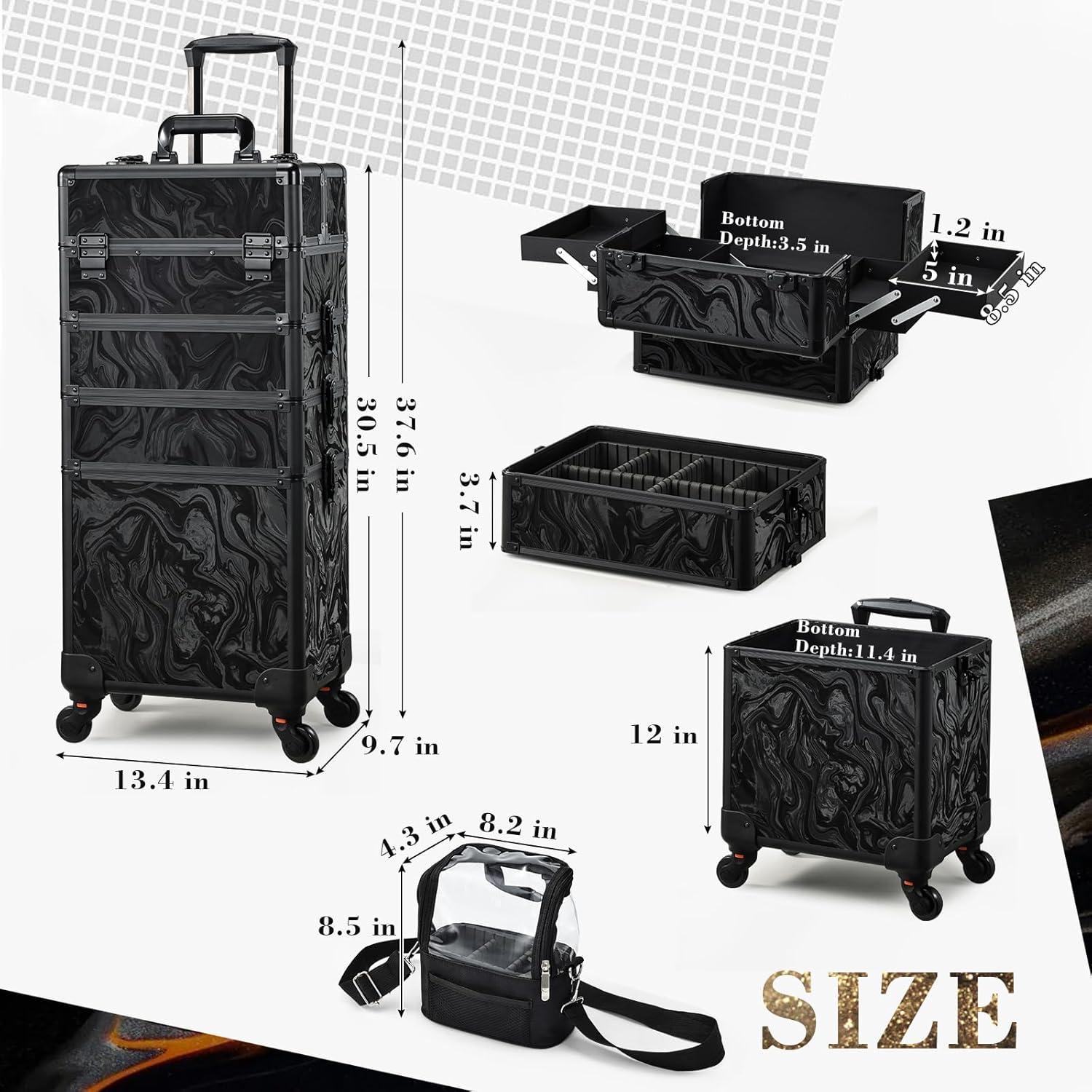 Versatile Portable Makeup Case: The Stagiant travel makeup case is a portable and versatile organizer. Measuring 13.4″L x 9.7″W x 30.5″H, it offers ample storage with an extendable 38″ pull rod for easy transport. A key-locking mechanism secures your cosmetics, making it ideal for any trip. Keep your beauty essentials safe, organized, and accessible on the go.
