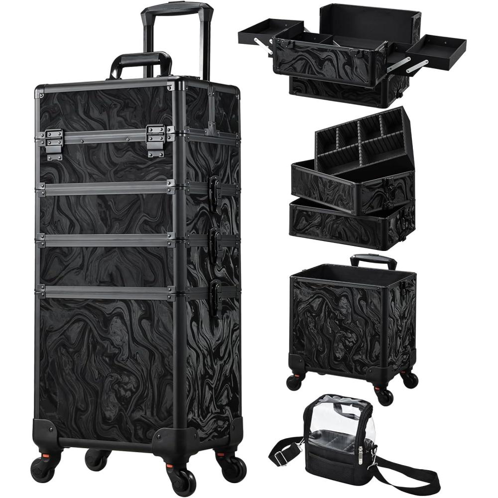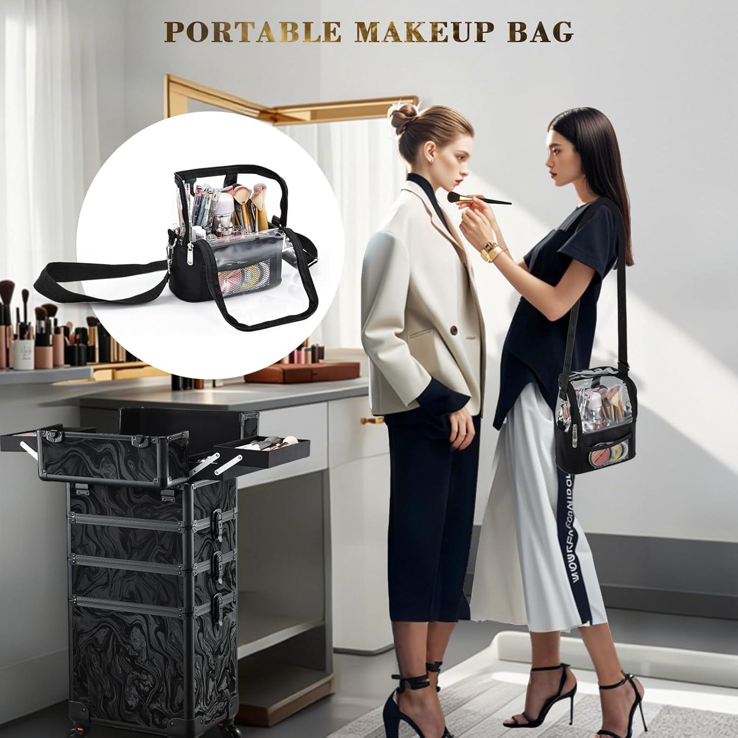 Rolling Makeup Box with Makeup Bag: The additional cosmetics case with a slanted shoulder strap offers greater ease of transport, ensuring seamless mobility during professional makeup assignments.