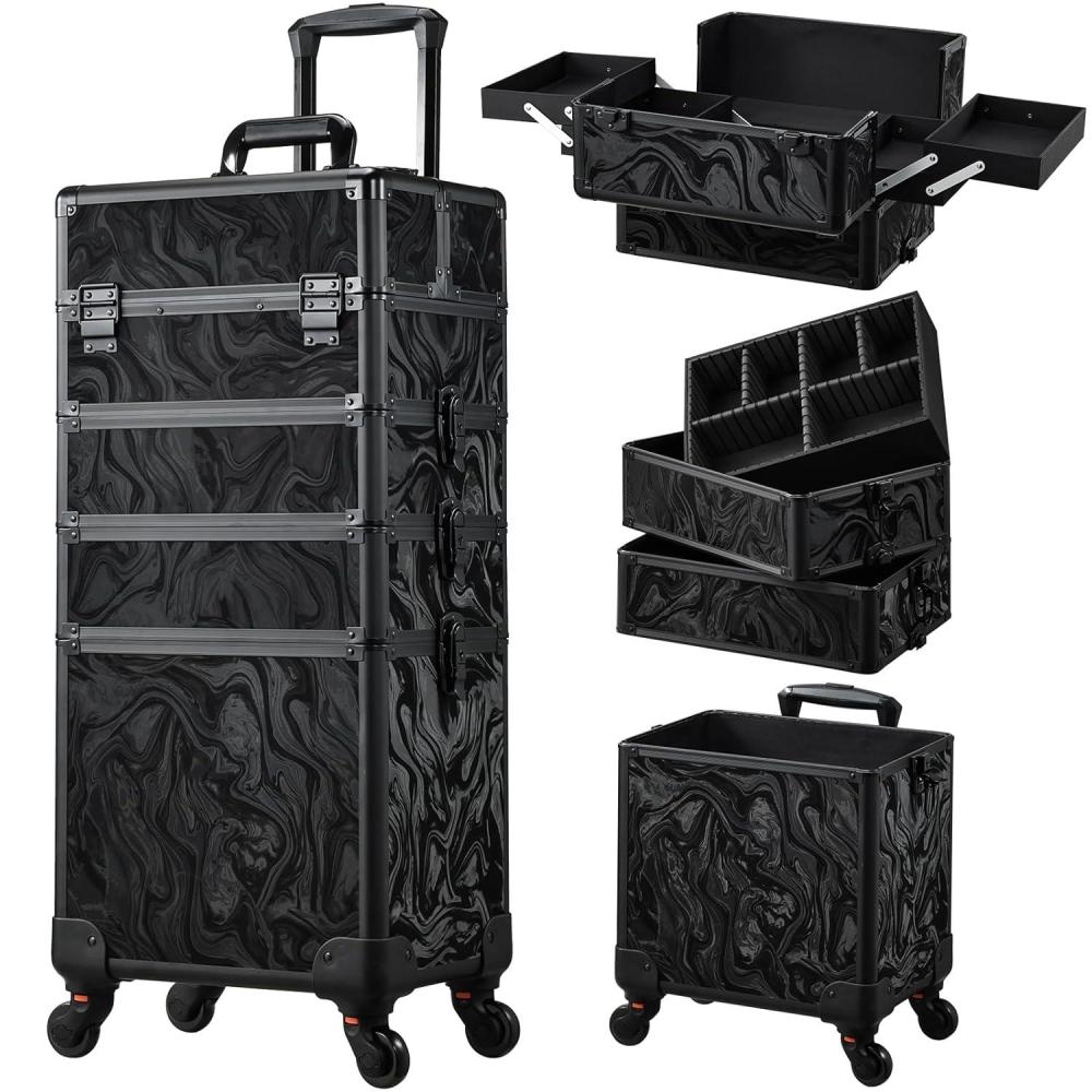 imageStagiant Rolling Makeup Train Case Cosmetology Case on Wheels 4 in 1 Cosmetic Box Makeup Travel Case with Key Swivel Wheels Nail Artist Salon Barber StorageTraveling Cart Trunk Dark GreenAlpine Black