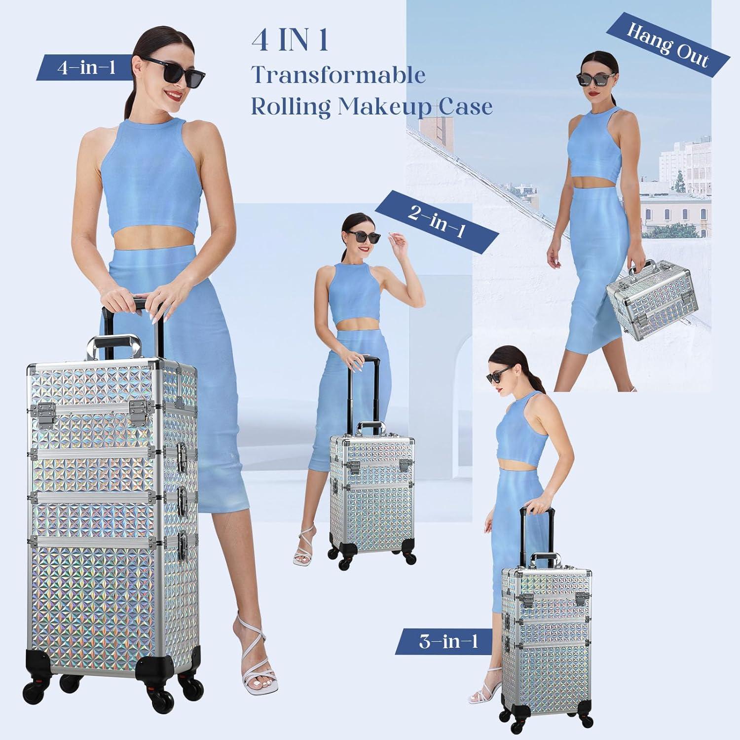 Adaptable 4-In-1 Makeup Train Case: Featuring four detachable compartments, this makeup trolley offers ultimate flexibility. The top section can be used as a portable makeup pouch, while the middle drawers can be removed to create a 3-in-1 or 2-in-1 configuration, ideal for various professional or personal needs.