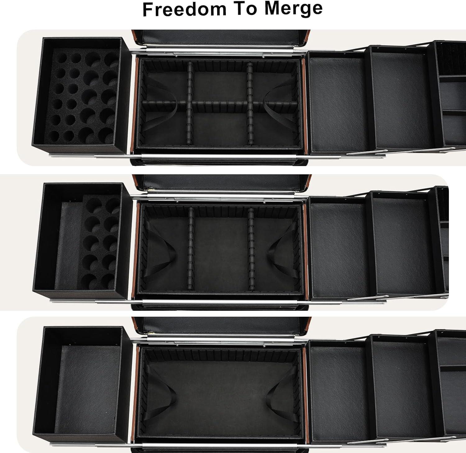 imageStagiant Rolling Makeup Case 4 in 1 Cosmetology Case on Wheels Makeup Travel Case with Cosmetic Bag Key Swivel Wheels Salon Barber Case Traveling Cart Trunk Cosmetic Trolley Alpine BlackAlpine Black with Bag