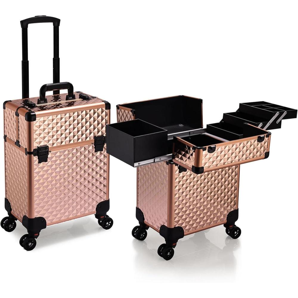 imageStagiant Rolling Makeup Train Case Large Storage Cosmetic Trolley 4 Tray with Sliding Rail Removable Middle Layer with Key Swivel Wheels Salon Barber Case Traveling Cart TrunkRose Gold